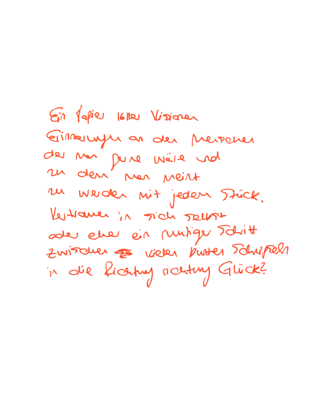 Träume sind flüchtig. Oft bleiben nur Fragmente, Bilder oder ein Gefühl beim Aufwachen. Ich lade dich dazu ein, mir einen deiner letzten Träume zu schreiben. Es kann auch einfach ein Ausschnitt oder ein Detail sein, das besonders in Erinnerung geblieben ist.